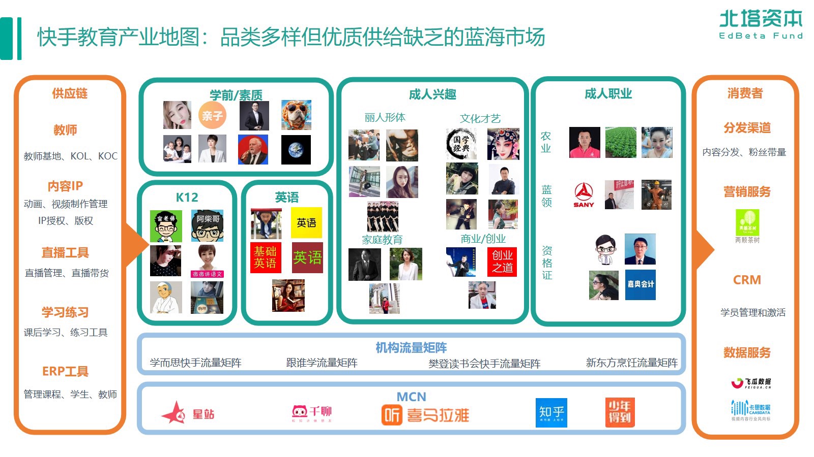短視頻流量和內容創(chuàng)作工具賦能,讓傳統(tǒng)教育機構沒能滿足的低價、小眾學習需求,在斜杠青年們興起后成為了可能。對于泛娛樂教育內容來說,平臺的定位并不一定是自主研發(fā),低價化、娛樂化、多元化的連接平臺也有存在必然性,目前快手已實現(xiàn)了從發(fā)現(xiàn)內容到線上授課的基本閉環(huán)。