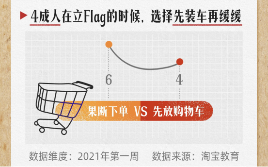 報(bào)告顯示,成年人的Flag往往自定義,周期長、見效慢、年復(fù)一年,4成消費(fèi)者選擇把Flag先放購物車晾一晾,等待下一個(gè)躊躇滿志的時(shí)刻;小朋友的Flag“娘定義”,往往短平快、目標(biāo)準(zhǔn)、使命必達(dá)。