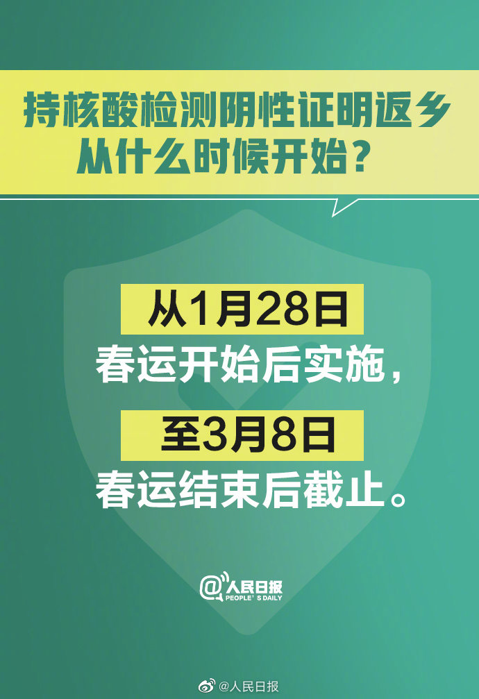 持核酸檢測陰性證明返鄉(xiāng)從1月28日春運開始后實施,至3月8日春運結(jié)束后截止。