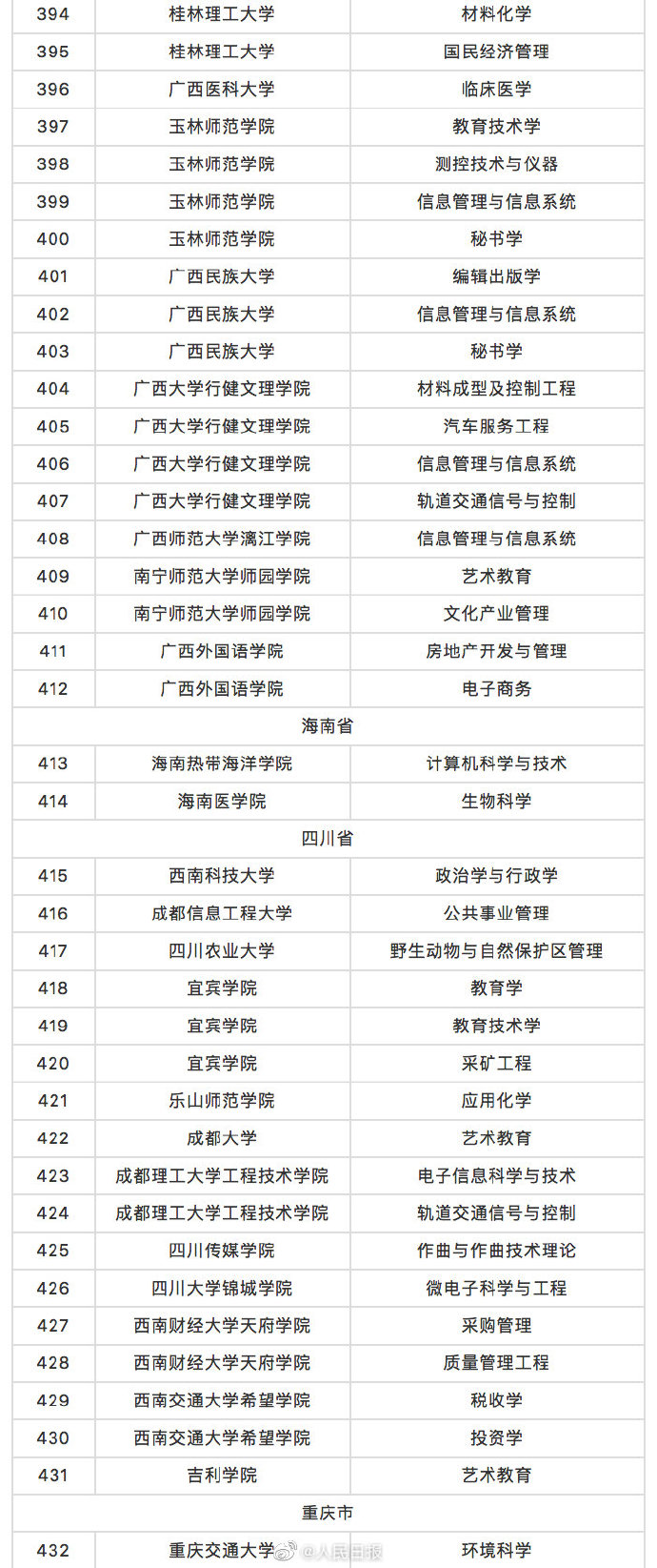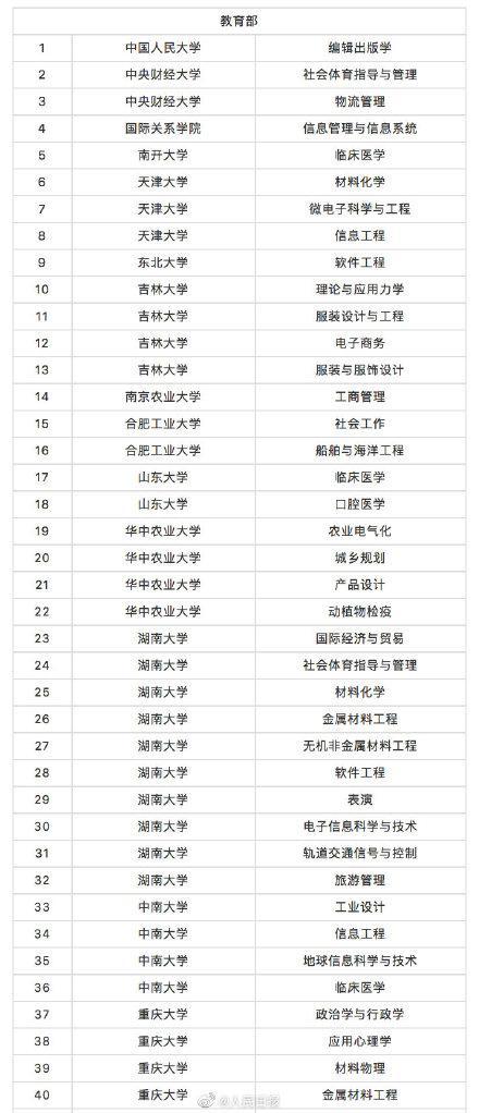 2021-03-02 09:06:30閱讀()人民網(wǎng)3月1日,教育部公布2020年度普通高等學(xué)校本科專業(yè)備案和審批結(jié)果,根據(jù)高等學(xué)校專業(yè)設(shè)置與教學(xué)指導(dǎo)委員會評議結(jié)果,共撤銷中國人民大學(xué)編輯出版學(xué)、中央財(cái)經(jīng)大學(xué)物流管理、南開大學(xué)臨床醫(yī)學(xué)等518個(gè)本科專業(yè)。被撤銷專業(yè)全名單轉(zhuǎn)發(fā)周知!