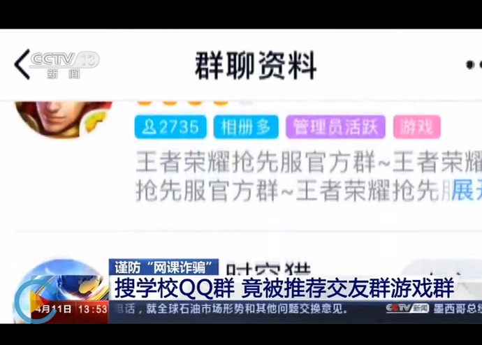 4月11日央視新聞發(fā)布視頻報道,發(fā)現(xiàn)一些擁有海量用戶的社交網(wǎng)絡平臺為了利益,疏于管理,不良內容很容易就傳播給未成年人。央視稱,近期在針對以學生為主的騙局中,以QQ為代表的社交軟件是不法分子行騙的主要工具。中小學生群體在使用QQ群時很容易接觸到不良信息。