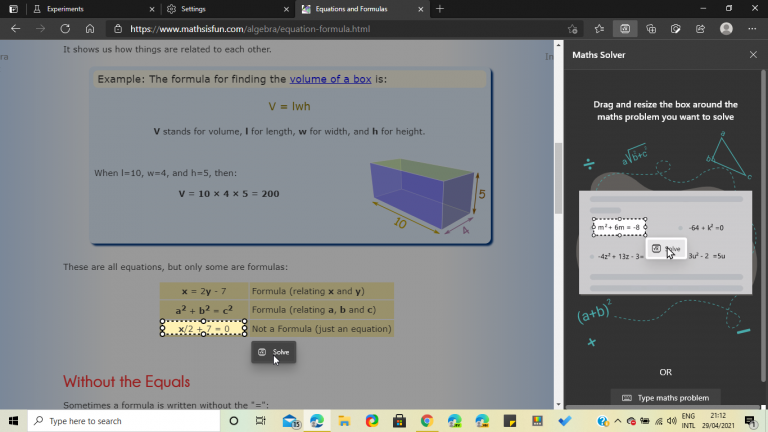 2021-04-30 11:58:54閱讀()互聯(lián)網(wǎng)4月30日消息上個(gè)月,微軟在其Edge瀏覽器中宣布了一項(xiàng)新的“MathSolver”(數(shù)學(xué)求解器)功能,可以幫助用戶解決數(shù)學(xué)問題。最近幾周在Canary頻道內(nèi)測(cè)試該功能后,微軟終于將MathSolver帶給了運(yùn)行穩(wěn)定版Edge瀏覽器的用戶。