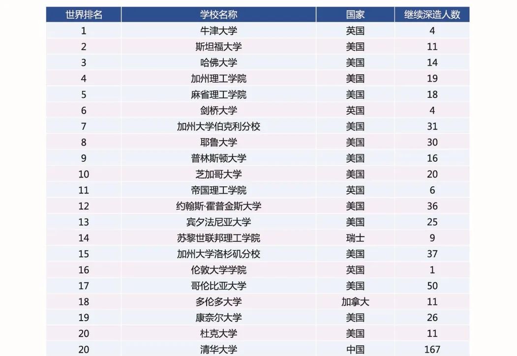 依據(jù)泰晤士高等教育2021年世界大學(xué)排名,中國(guó)科大近五屆本科畢業(yè)生前往世界排名前100位一流大學(xué)繼續(xù)深造人數(shù)占深造總?cè)藬?shù)的的比例為76.1%,包括牛津大學(xué)、斯坦福大學(xué)、哈佛大學(xué)等。本科畢業(yè)生直接工作主要單位,則包括了普聯(lián)、華為、國(guó)盾量子、科大訊飛等等。