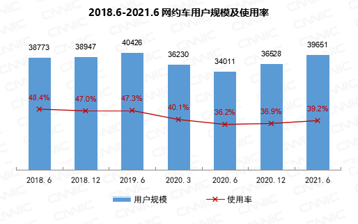截至2021年6月,我國網約車用戶規(guī)模達3.97億,較2020年12月增長3123萬,占網民整體的39.2%。