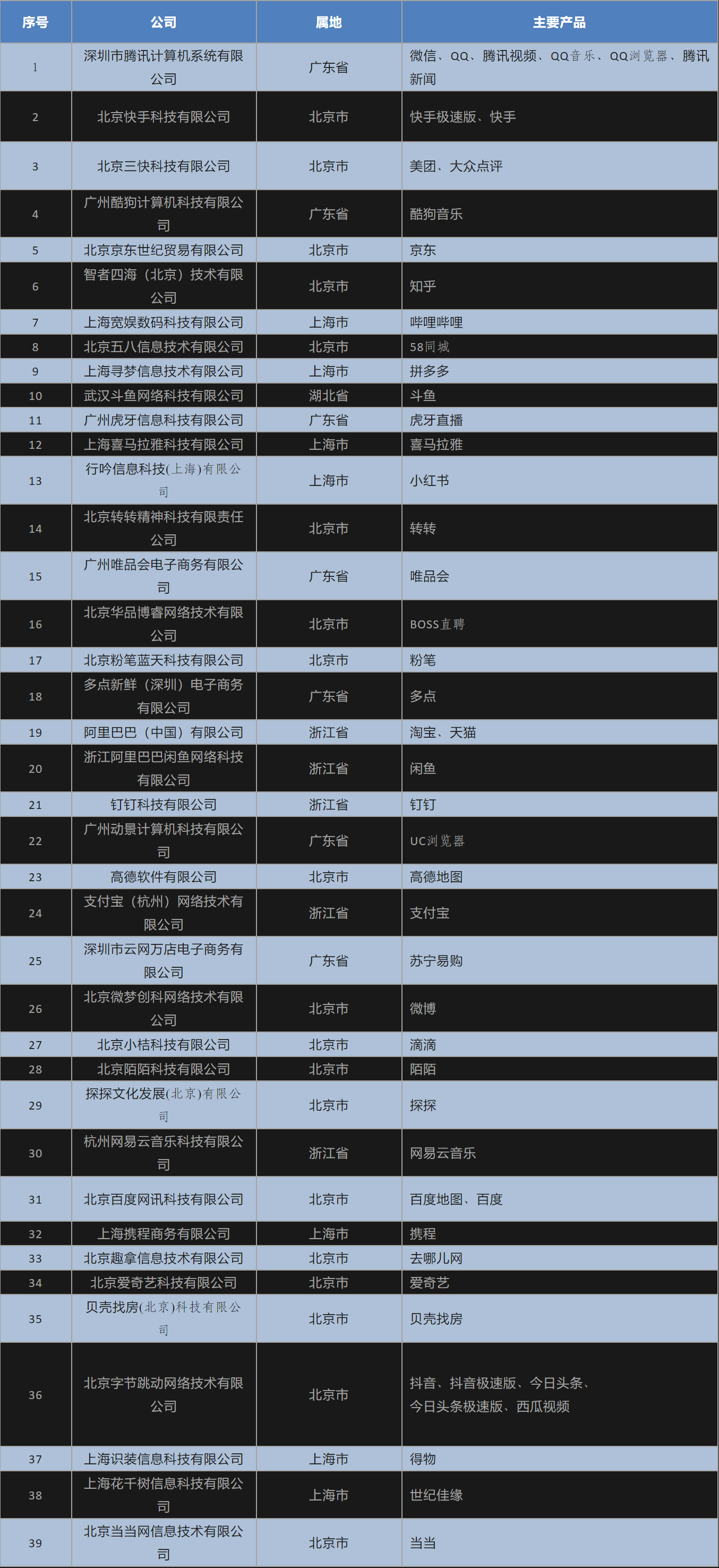 以下為首批設(shè)立“雙清單”、提升客服熱線響應(yīng)能力、優(yōu)化隱私政策和權(quán)限調(diào)用展示方式的互聯(lián)網(wǎng)企業(yè)名單: