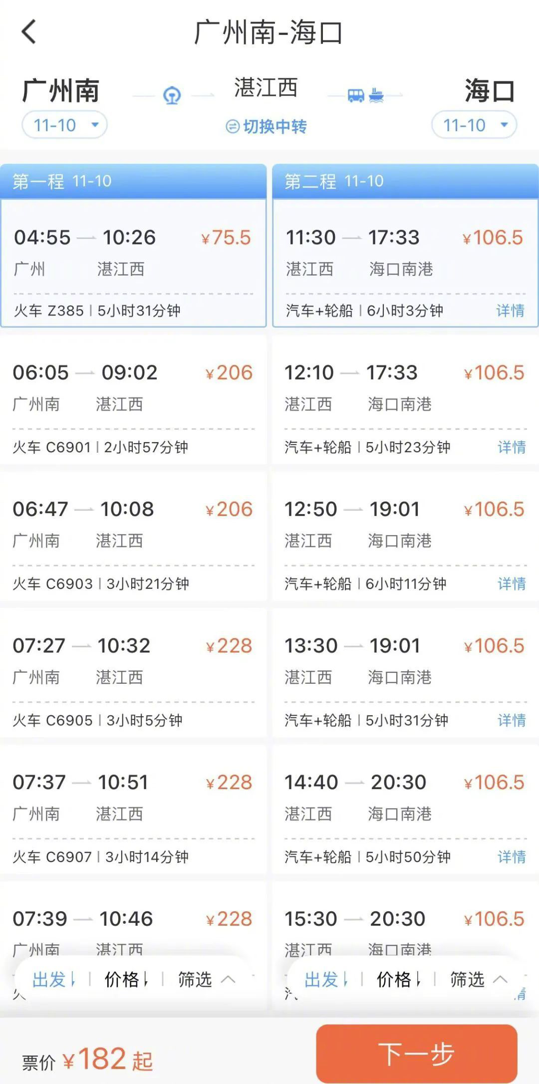 從全國各車站(除湛江西站),前往海南的旅客,可選擇購買“鐵水聯(lián)運”產(chǎn)品。