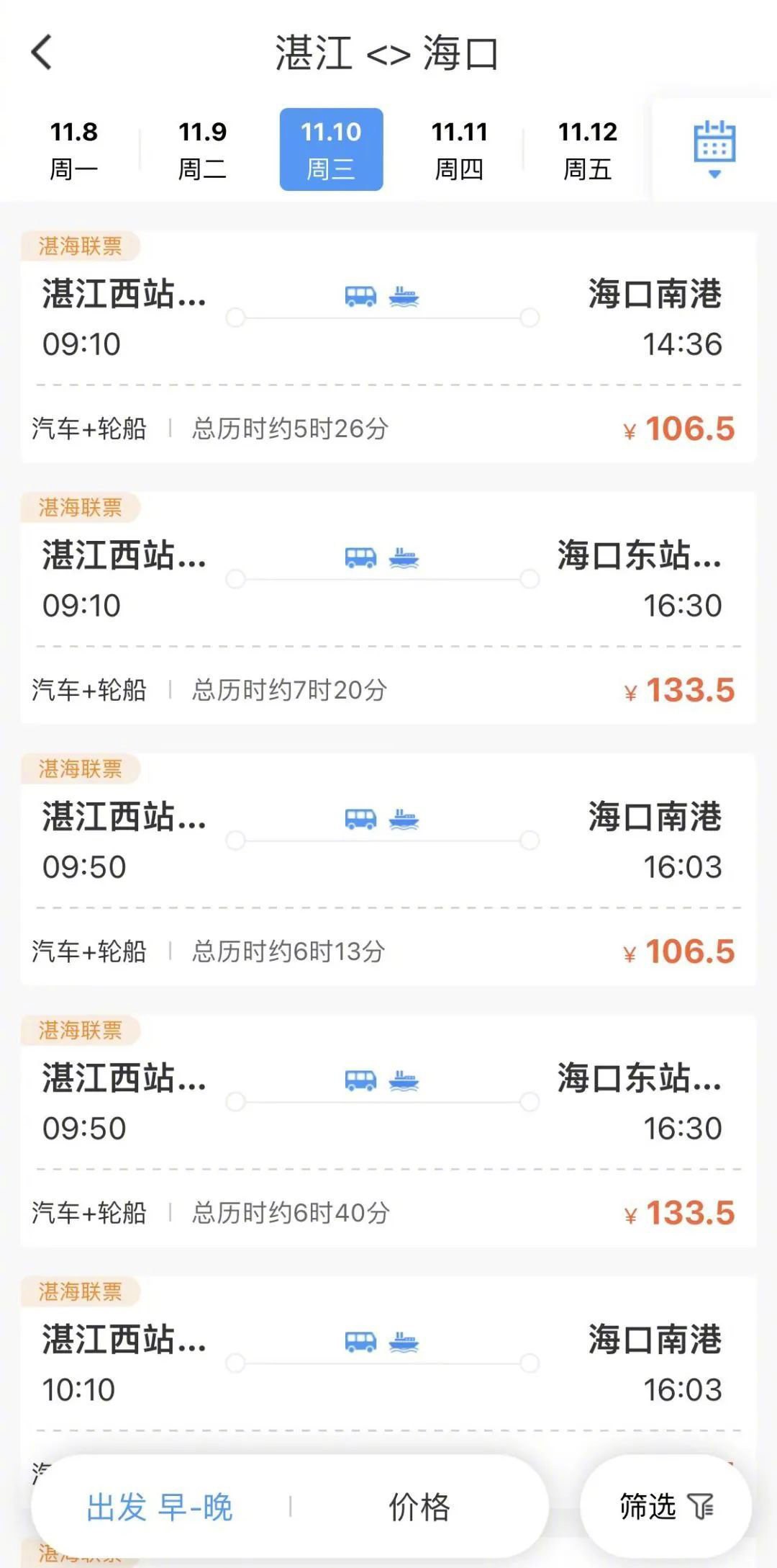 從湛江西站前往海南的旅客,可選擇購買“公水聯(lián)程”產(chǎn)品。