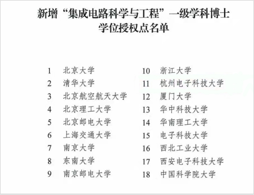 全國首批18所高校,集成電路科學與工程一級學科博士學位授權點出爐