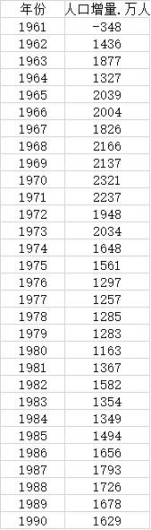 數(shù)據(jù)顯示,受三年自然災(zāi)害影響,1960年、1961年總?cè)丝谶B續(xù)兩年下降。1962年迅速反彈,當年凈增人口達到了1436萬人。其后,從1963年開始到1975年,年凈增人口均超過了1500萬人。1976年后凈增人口數(shù)量雖然有所下降,但也都在1100萬以上。尤其是,從1986年到1990年凈增人口均超過了1500萬人。進入上世紀九十年代,凈增人口也一直保持在1000萬以上。