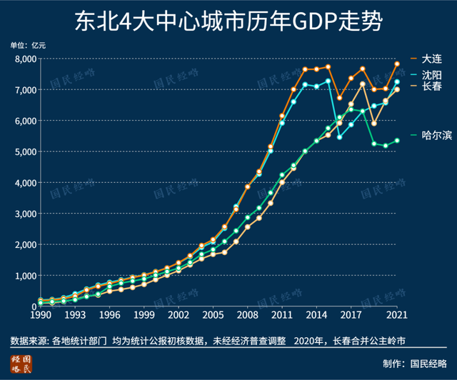 不過(guò),近年來(lái),東北經(jīng)濟(jì)強(qiáng)市被其他省會(huì)陸續(xù)趕超。加上前幾年經(jīng)濟(jì)普查,原本已經(jīng)突破7000億的多個(gè)東北地市,GDP遭遇擠水分,又回到了重新攀上7000億的歷程。