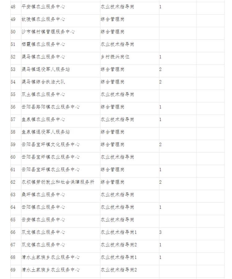 此外,記者注意到,云陽縣2021年上半年曾公開招聘事業(yè)單位工作人員247名。一覽表顯示,除了幾家醫(yī)院和疾控中心的部分崗位外,其余崗位多要求本科以上學(xué)歷及相應(yīng)學(xué)位,不少崗位與今年第二季度招聘公告的崗位相同或類似。當(dāng)年第三季度招聘事業(yè)單位工作人員7名,云陽縣預(yù)算績效管理中心、縣融媒體中心等招聘單位則均要求工作人員研究生學(xué)歷及相應(yīng)學(xué)位。