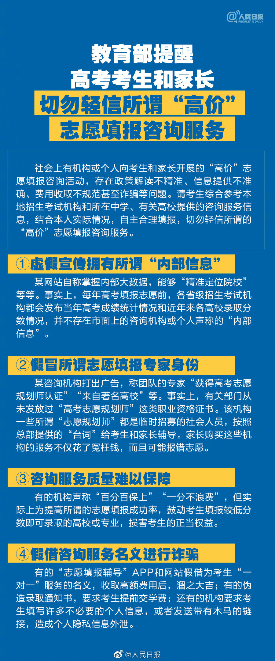 教育部發(fā)布志愿填報(bào)預(yù)警:勿信所謂高價(jià)志愿填報(bào)咨詢服務(wù)