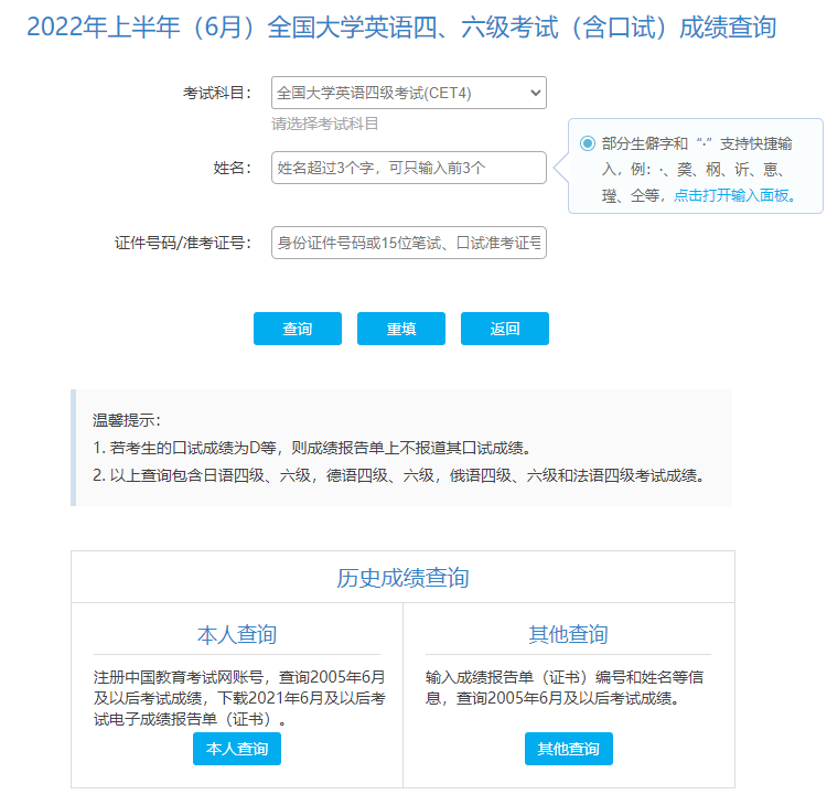 點擊進入:2022年上半年全國大學英語四、六級考試成績查詢?nèi)肟?/a>