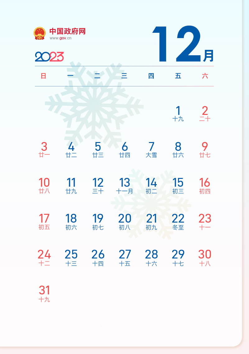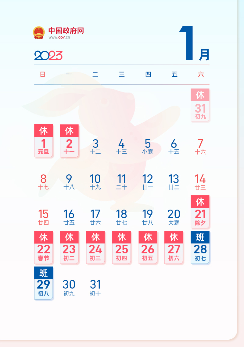 2022-12-09 08:39:32閱讀()中國(guó)政府網(wǎng)國(guó)務(wù)院辦公廳關(guān)于2023年部分節(jié)假日安排的通知