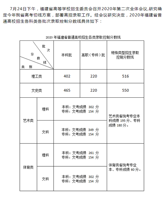 5、高職專(zhuān)科批文化課控制線:普通高職專(zhuān)科文史、理工類(lèi)為160分,藝術(shù)類(lèi)和體育類(lèi)高職專(zhuān)科為150分。