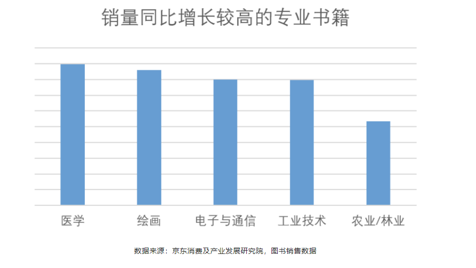 2023年網(wǎng)上銷售的專業(yè)書籍中,醫(yī)學(xué)、繪畫、電子與通信、工業(yè)技術(shù)和農(nóng)業(yè)/林業(yè)書籍的銷量增長最高。
