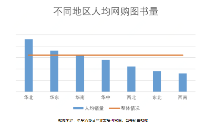 從區(qū)域來看,華北、華東地區(qū)人均網(wǎng)購圖書量高于全國均值1%-4%,華南地區(qū)人均網(wǎng)購圖書量與全國均值基本相當(dāng),華中、西北、東北、西南地區(qū)人均網(wǎng)購圖書量低于全國均值。