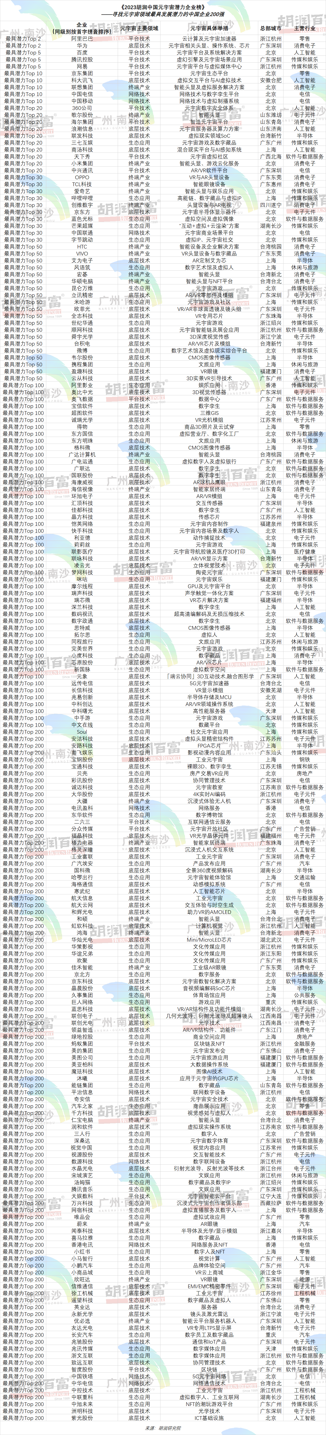 2023-07-24 10:54:08閱讀()胡潤(rùn)研究院7月20日,胡潤(rùn)研究院發(fā)布了《2023胡潤(rùn)中國(guó)元宇宙潛力企業(yè)榜》,該榜單列出元宇宙領(lǐng)域最具發(fā)展?jié)摿Φ闹袊?guó)企業(yè)200強(qiáng)。