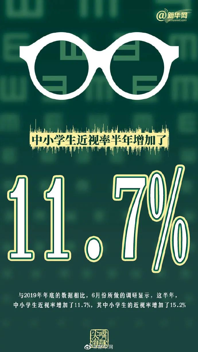 近期,教育部發(fā)布了中小學生視力情況抽樣調查,結果顯示,與2019年同期相比,9個省的中小學生近視率增加了11.7%,小學生的近視率增加最多,達到了15.2%。