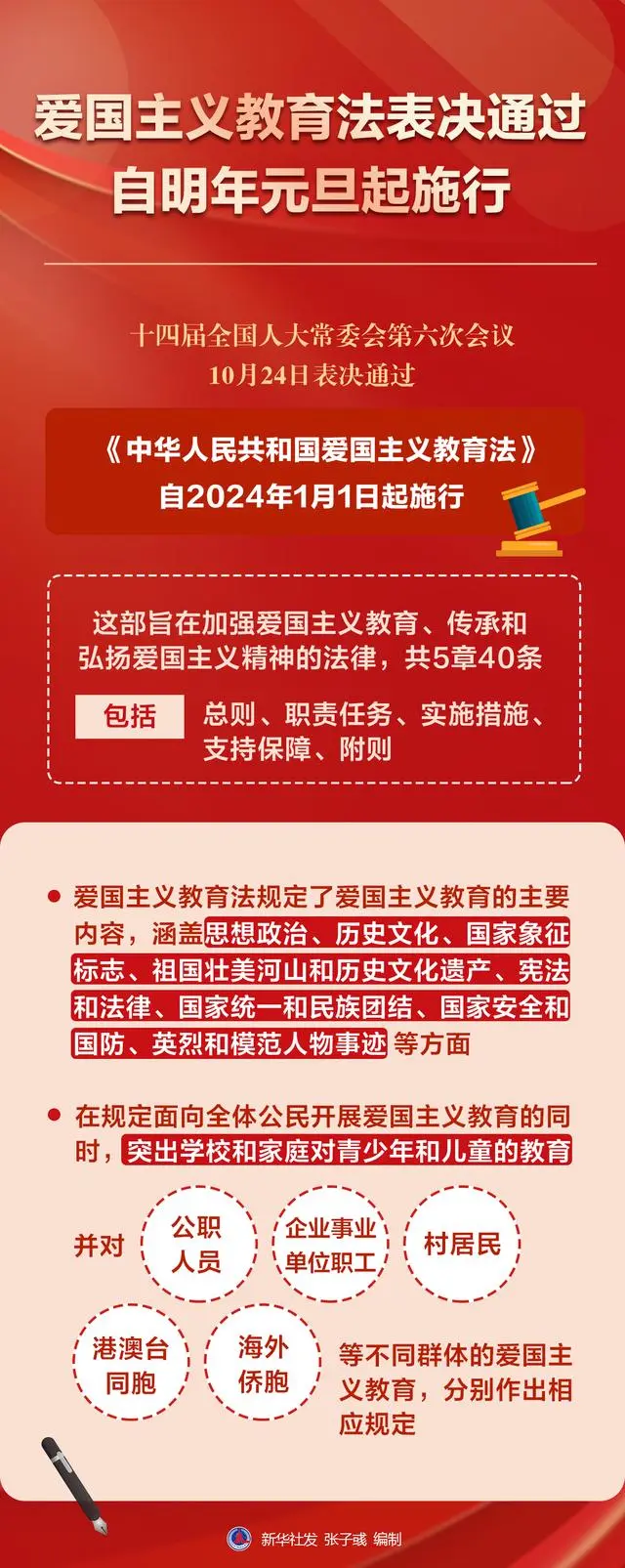 您的位置:首頁 / 行業(yè)資訊 / [人大常委會]愛國主義教育法表決通過,自明年元旦起施行