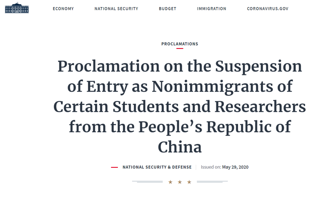 最后值得一提的是,在今年5月29日,美國總統(tǒng)特朗普曾簽發(fā)了一則封殺部分中國留學生和學者的總統(tǒng)令,禁止任何與在中國從事“軍民融合”項目的院校機構有關聯(lián)的學生和學者,來美國進行本科以上的學習和學術研究。