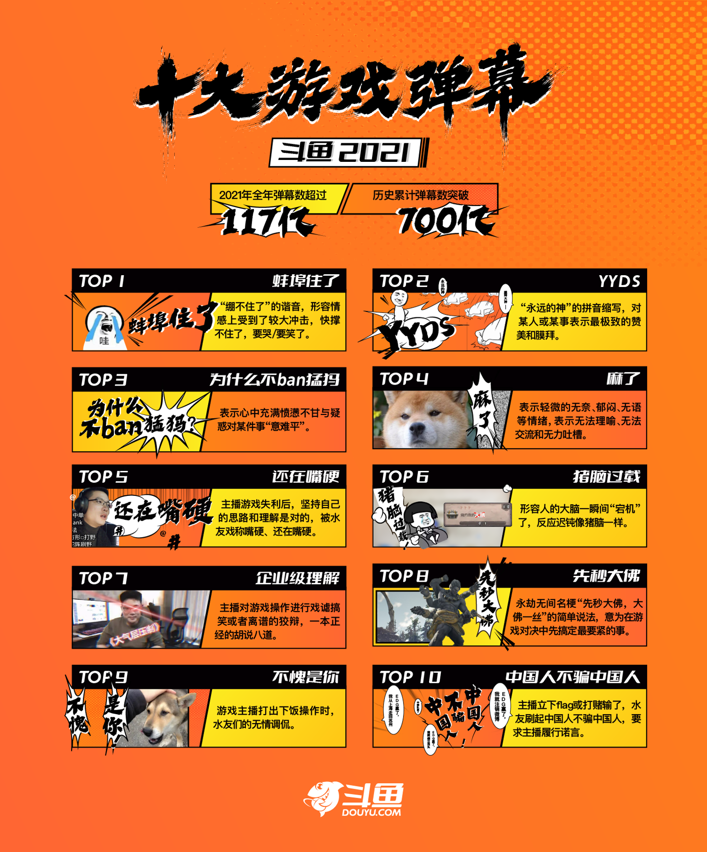 斗魚公布2021年度十大彈幕:蚌埠住了、yyds、為什么不ban猛犸入選前三