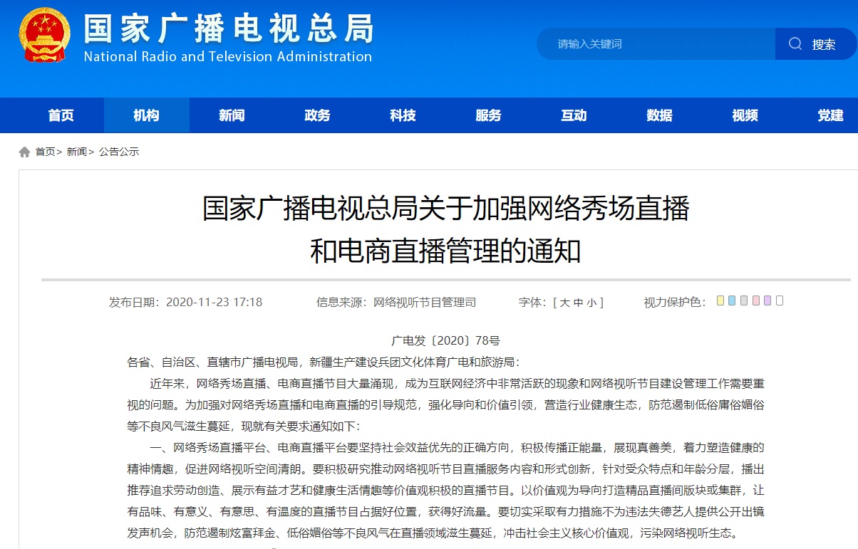 11月23日消息今天,廣電總局發(fā)布了關于加強網絡秀場直播和電商直播管理的通知,通知指出,網絡秀場直播平臺要對網絡主播和打賞用戶實行實名 ...