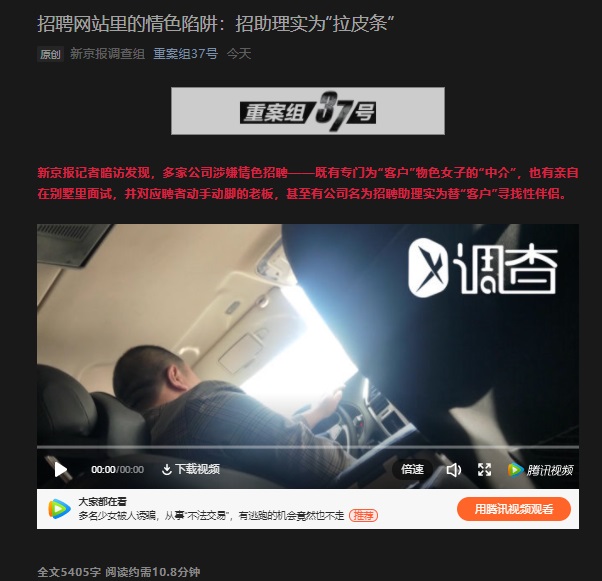 媒體調查BOSS直聘網站聘陷阱:招助理實為 “拉皮條”