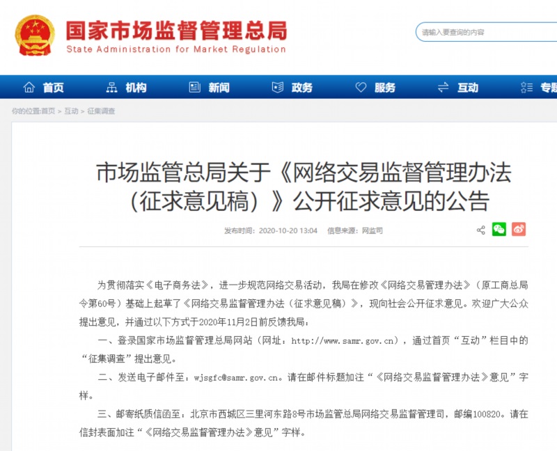 近日,國家市場監(jiān)管總局公布了《網絡交易監(jiān)督管理辦法(征求意見稿)》,進一步規(guī)范網絡交易活動,將網絡直播帶貨等網絡交易新業(yè)態(tài)納入監(jiān)管范 ...