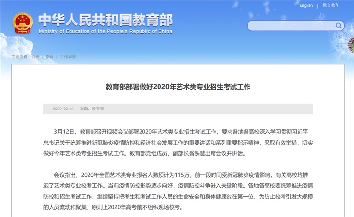教育部:鼓勵(lì)藝考生網(wǎng)上提交作品與面試