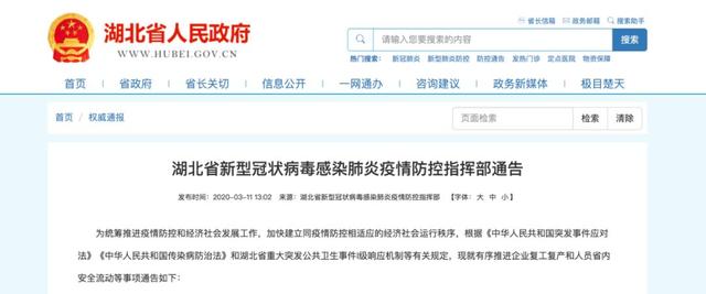 湖北最新通告:繼續(xù)嚴(yán)格管控離漢離鄂通道,繼續(xù)延遲開(kāi)學(xué)11日,湖北省新型冠狀病毒感染肺炎疫情防控指揮部發(fā)布通告,對(duì)有序推進(jìn)企業(yè)復(fù)工復(fù)產(chǎn) ...