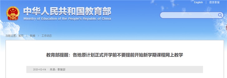 教育部:各地原計(jì)劃正式開(kāi)學(xué)前不要提前網(wǎng)上教學(xué)
