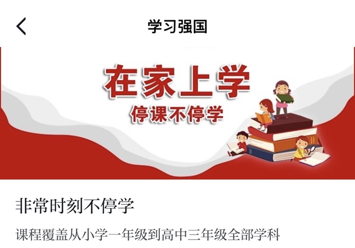 學(xué)習(xí)強(qiáng)國(guó)App推出“在家上學(xué)”專(zhuān)題課堂