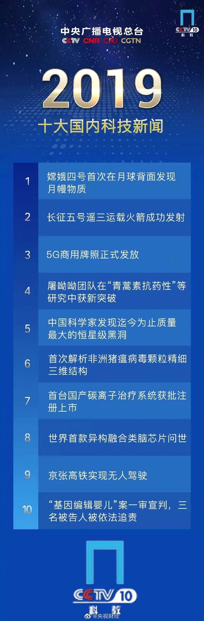 1月1日凌晨,中央廣播電視總臺(tái)發(fā)布了2019十大國內(nèi)國際科技新聞。2019十大國內(nèi)科技新聞包括:嫦娥四號(hào)首次在月球背面發(fā)現(xiàn)月幔物質(zhì)、長征五號(hào) ...