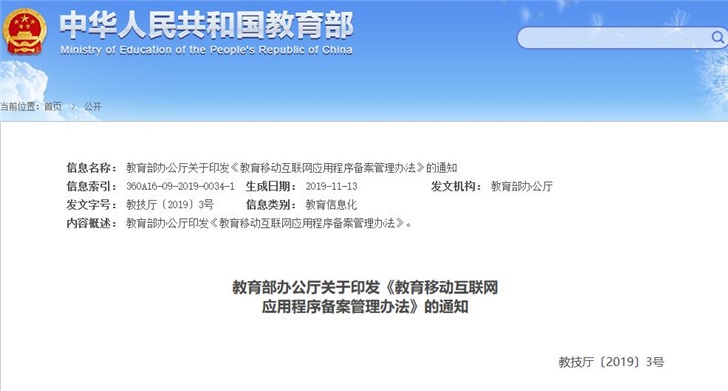 近日,教育部辦公廳印發(fā)《教育移動互聯(lián)網(wǎng)應(yīng)用程序備案管理辦法》的通知,通知要求各單位于2019年12月1日至2020年1月31日前完成對現(xiàn)有教育移 ...