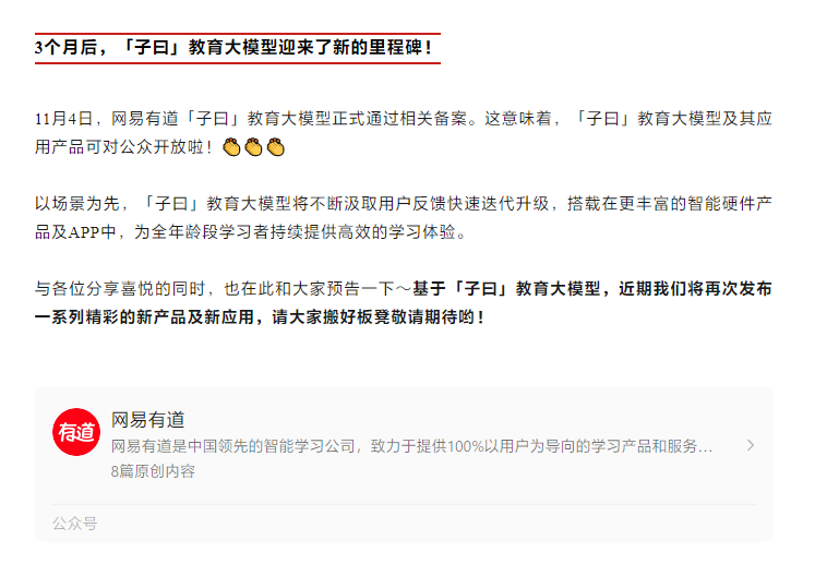 網(wǎng)易有道“子曰”教育大模型通過相關備案,將對公眾開放