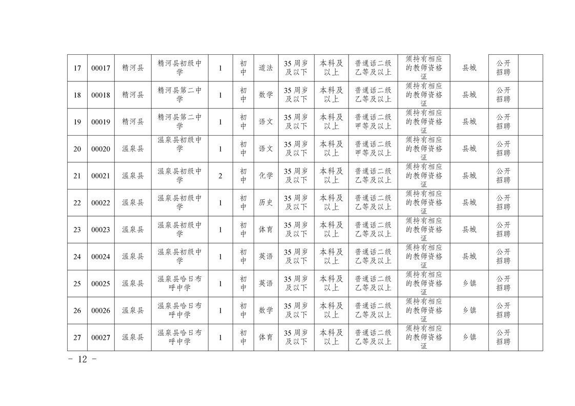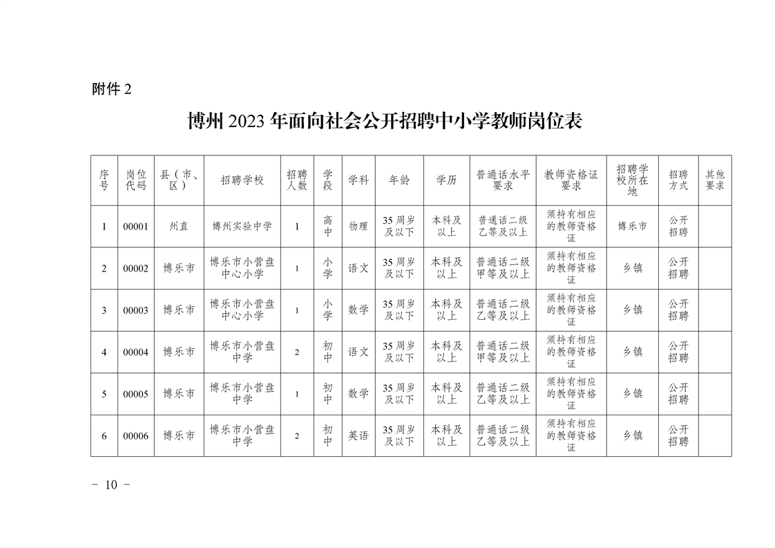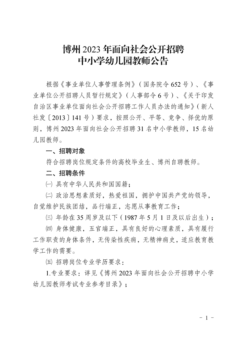 1.專業(yè)要求:詳見《博州2023年面向社會公開招聘中小學幼兒園教師考試專業(yè)參考目錄》;