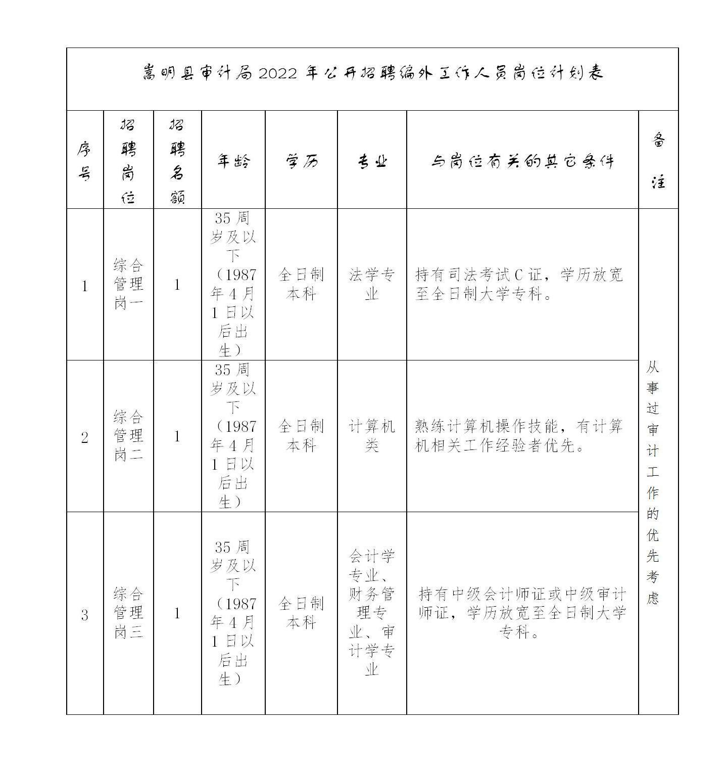 2022年昆明嵩明縣審計(jì)局公開招聘編外工作人員公告
