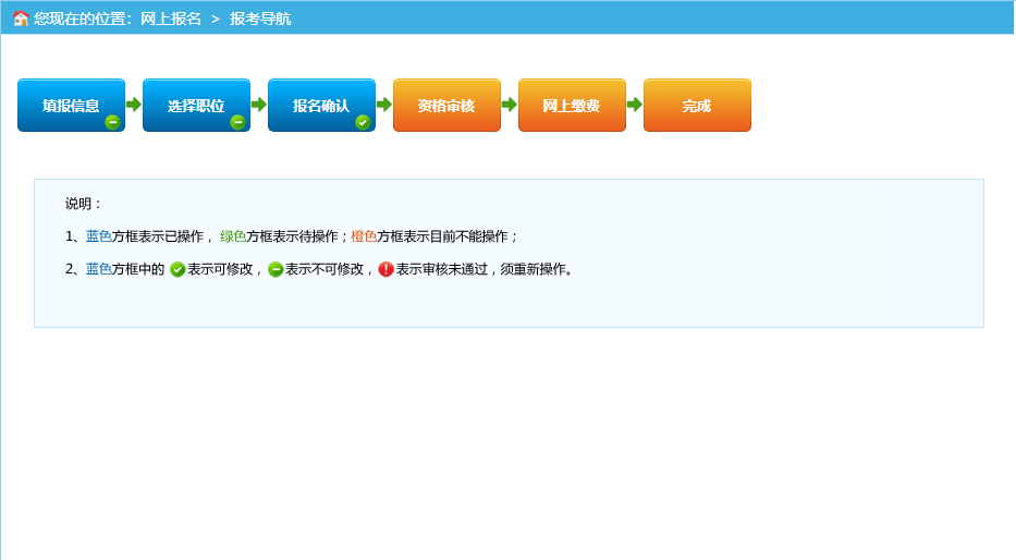 報(bào)考人員報(bào)名信息提交后,請(qǐng)務(wù)必進(jìn)行“報(bào)名確認(rèn)”操作,否則,報(bào)考單位無(wú)法進(jìn)行資格審查。
