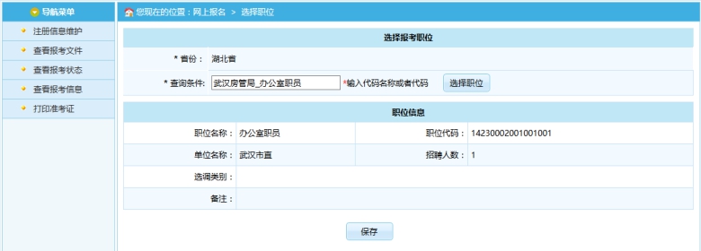 通過點擊“選擇職位”選項,可以跳轉到選擇報考職位界面,如下圖所示: