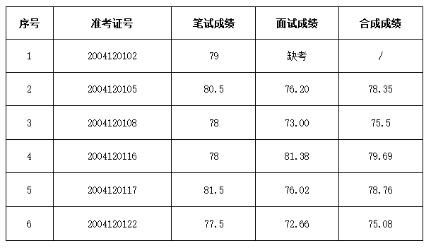 根據(jù)《含山縣應(yīng)急管理局公開招聘政府購(gòu)買服務(wù)工作人員公告》要求,現(xiàn)將本次面試成績(jī)與筆試成績(jī)按照5:5的比例進(jìn)行合成,合成成績(jī)公示如下,公示期限5天, 自2020年4月20日至2020年4月24日。如有異議,請(qǐng)來(lái)電反映。