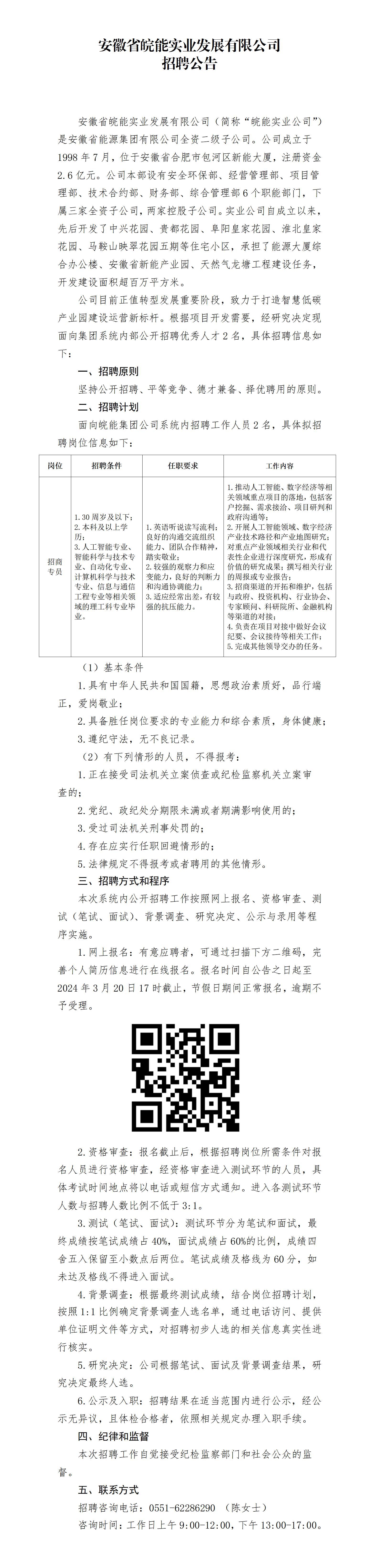 2024年安徽省皖能實業(yè)發(fā)展有限公司招聘公告