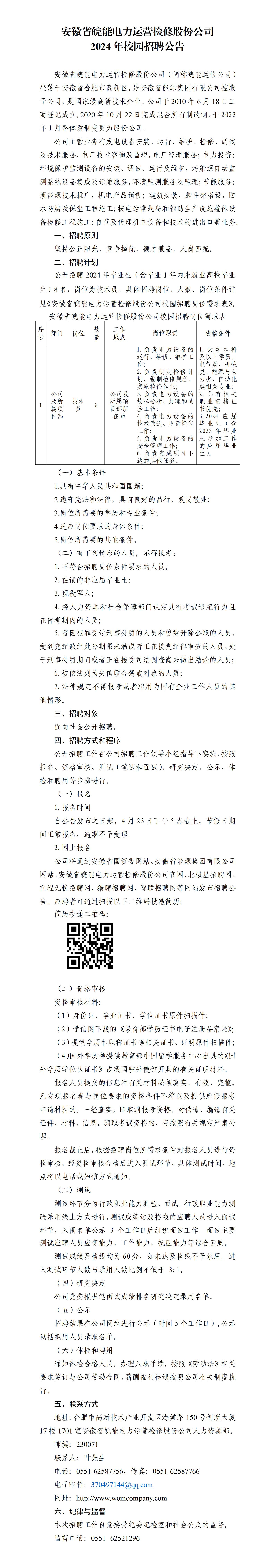 2024年安徽省皖能電力運(yùn)營(yíng)檢修股份公司校園招聘公告