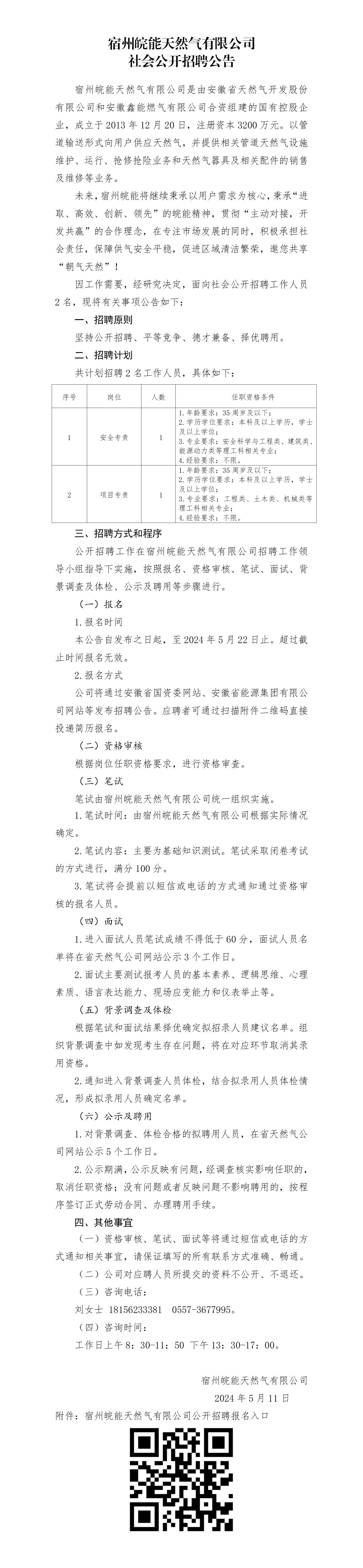 2024年宿州皖能天然氣有限公司社會公開招聘公告
