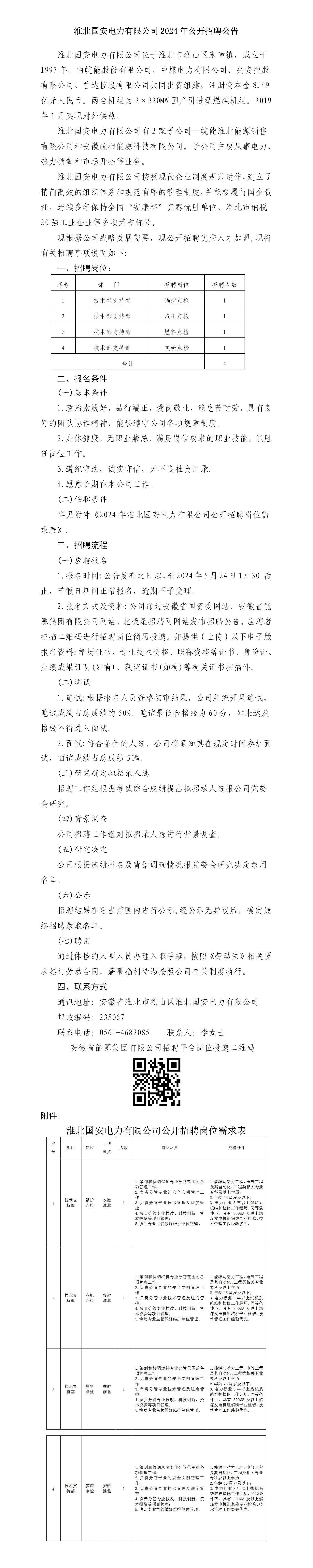 2024年淮北國(guó)安電力有限公司公開(kāi)招聘公告