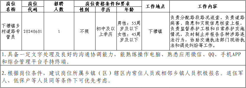 1、招聘對(duì)象為初中及以上學(xué)歷以及符合招聘崗位條件的人員,且必須符合以下條件: