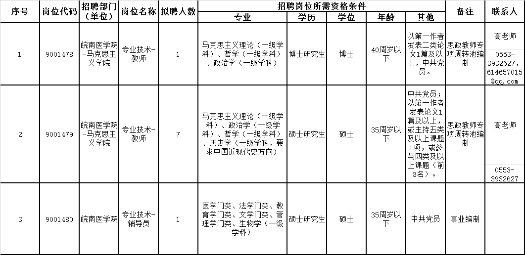 聯(lián)系部門:皖南醫(yī)學(xué)院人事處