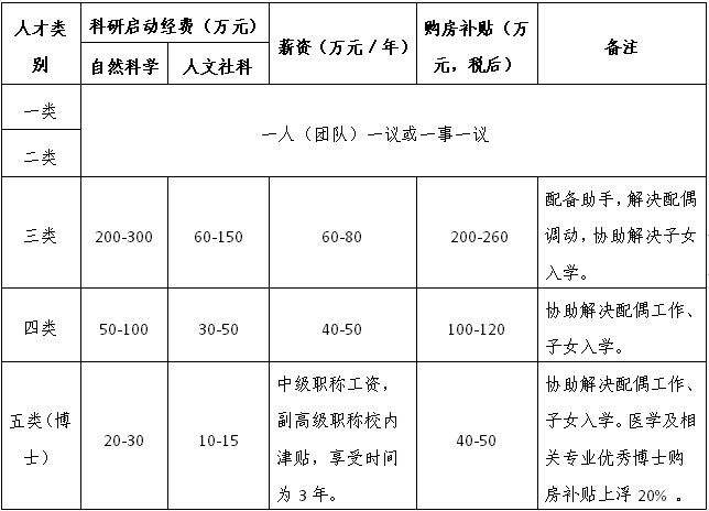 1、對于全職引進的博士及以上高層次人才,按照《皖南醫(yī)學(xué)院引進高層次人才實施辦法(修訂)》(校政[2018]191號)(http://rsc.wnmc.edu.cn/63/10/c1981a90896/page.htm)提供購房補貼、安家費、科研啟動經(jīng)費等。標準如下: