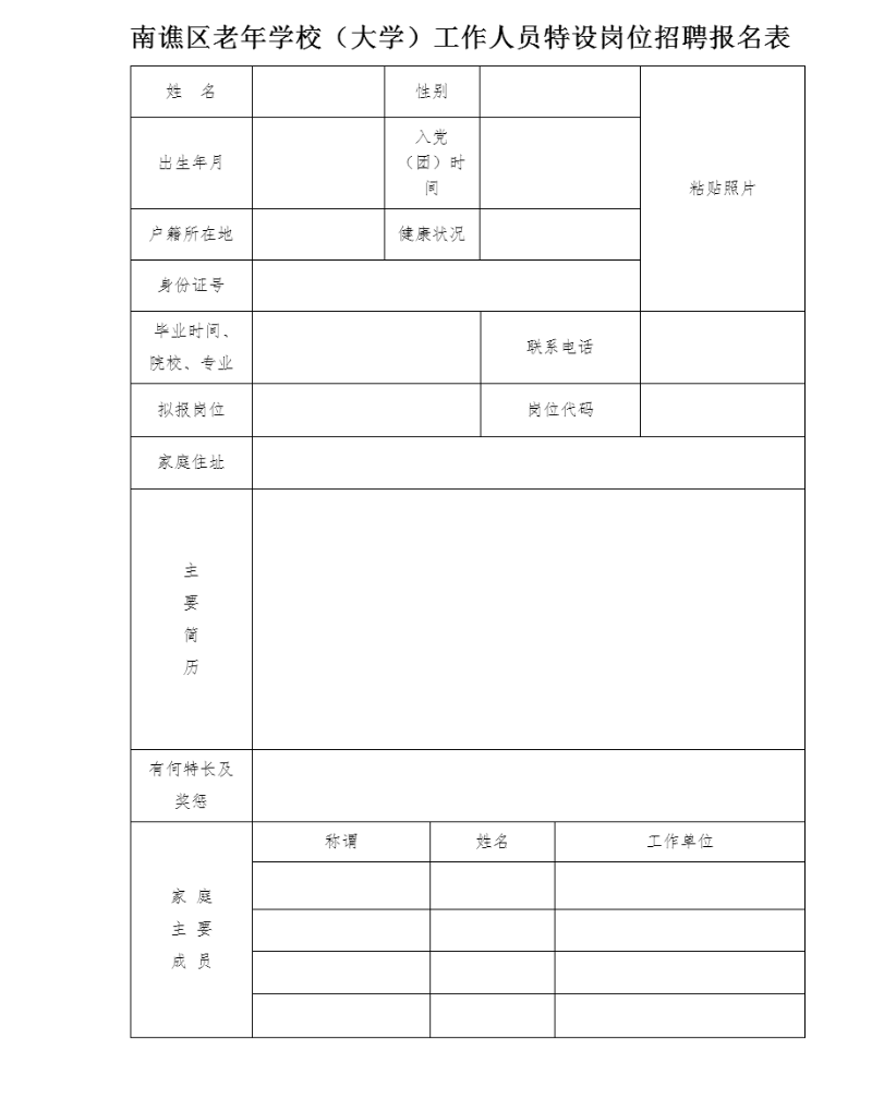 附件:1.南譙區(qū)老年學(xué)校(大學(xué))工作人員特設(shè)崗位招聘報名表