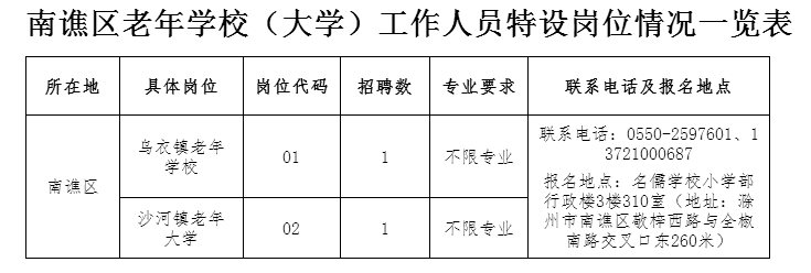 2.南譙區(qū)老年學(xué)校(大學(xué))工作人員特設(shè)崗位情況一覽表